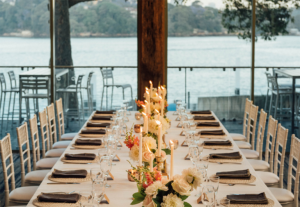Deckhouse integrates seamlessly into its picturesque park side and waterfront surroundings and is the ideal wedding venue in Sydney. With wall to ceiling glass, an exclusive outdoor terrace, deck and private bar, the venue can accommodate small and large numbers for cocktail or banquet-style receptions.